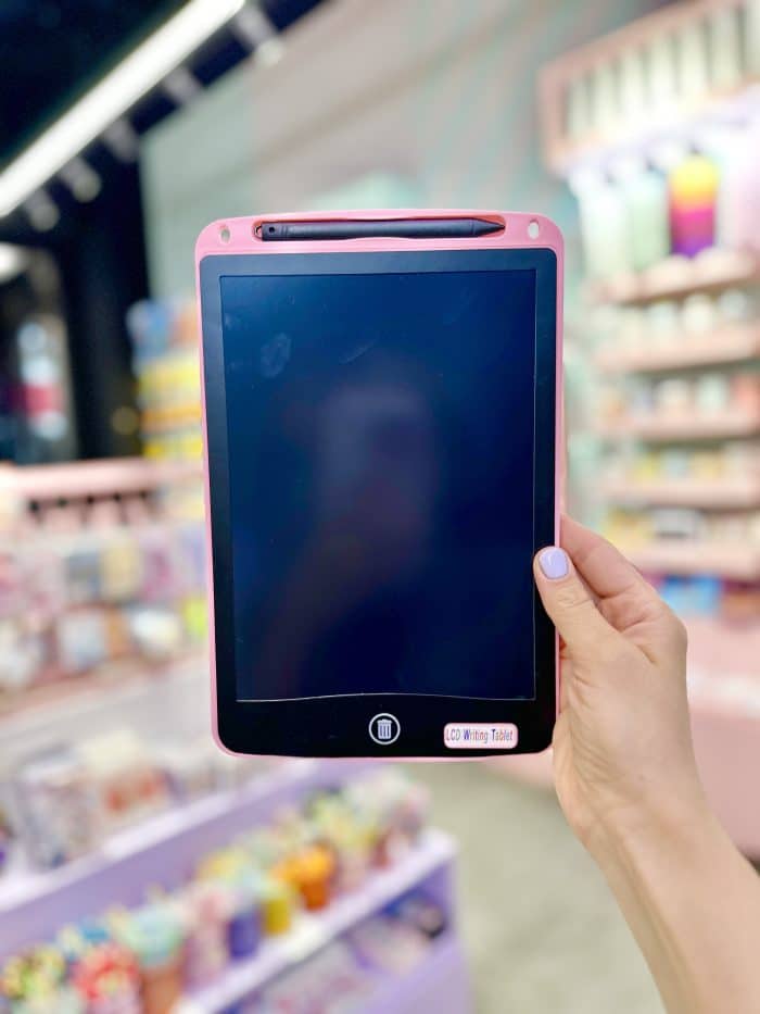 تبلت جادویی دارای قلم مخصوص است و کودک شما می‌تواند با استفاده ازآن روی صفحه نقاشی و طراحی های زیبا بکشد. همچنین میتوانید از این تبلت برای آموزش حروف فارسی و انگلیسی ، اعداد و … استفاده کنید. روی تبلت یک دکمه برای پاک شدن تمام صفحه وجود دارد که با فشردن آن تمام صفحه پاک شده. در صورتی که بخواهید برای مدت طولانی تری اطلاعات را روی صفحه نگه دارید، در پشت تبلت یک کلید است که اگر بر روی حالت قفل قرار گیرد، دیگر دکمه پاک کننده کار نخواهد کرد و همه چیز بر روی صفحه باقی خواهد ماند.